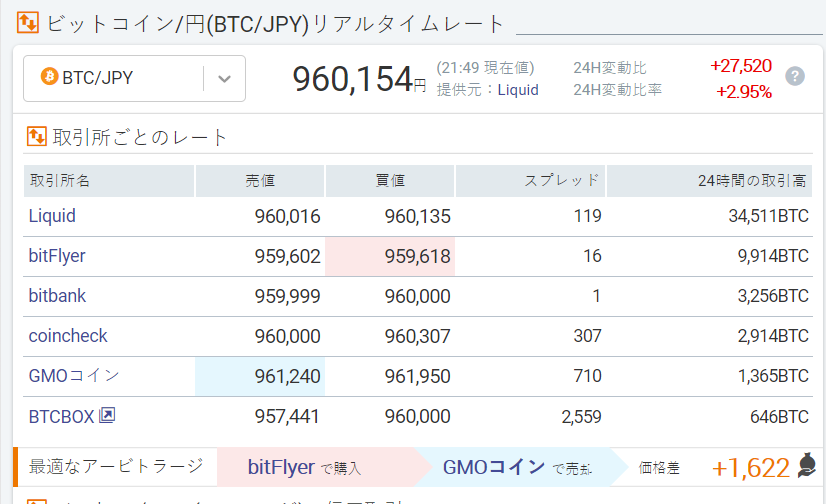 2000円以上差額が開いているときもありますね。取引所によっては手数料で1000円近く取られてしまうので、最低2000円は開いてほしいところです。