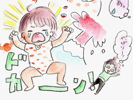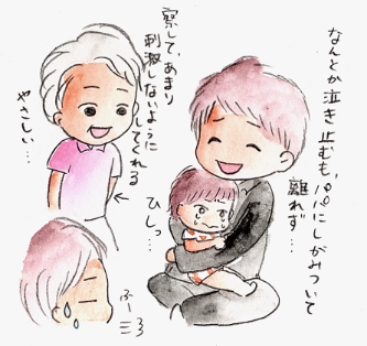 わたしとパパで抱っこしてなだめていると、だんだん落ち着いてきて・・・