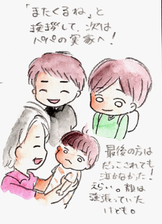 最後にもう一度、ひぃおばあちゃんに抱っこしてもらいました。今度は泣かないるぅちゃん。