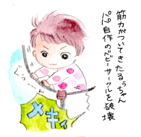 パパが作ってくれたベビーサークル。補強に補強を重ね、素敵なベビーサークルになったのですが、