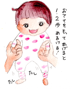 つかまり立ちから、つかまり歩きへ、そしてついにおててをもって歩けました!